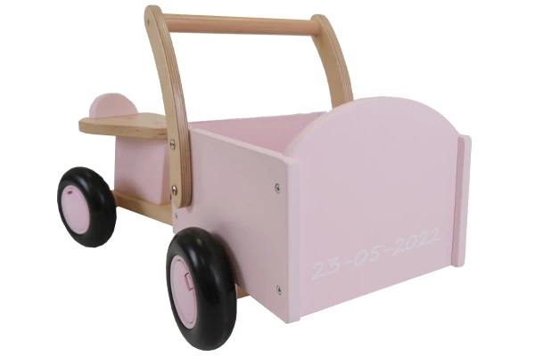 Prachtige houten bakfiets van Bandits & Angels in de kleur mint groen. Deze houten loopwagen is geschikt voor kinderen vanaf 1 jaar. De wielen zijn fluisterstil en geven geen krassen op de vloeren. De bakfiets is een zeer geslaagd kraamcadeau en kan ook worden voorzien van een naamsticker of een kinbeschermer (optioneel verkrijgbaar).
